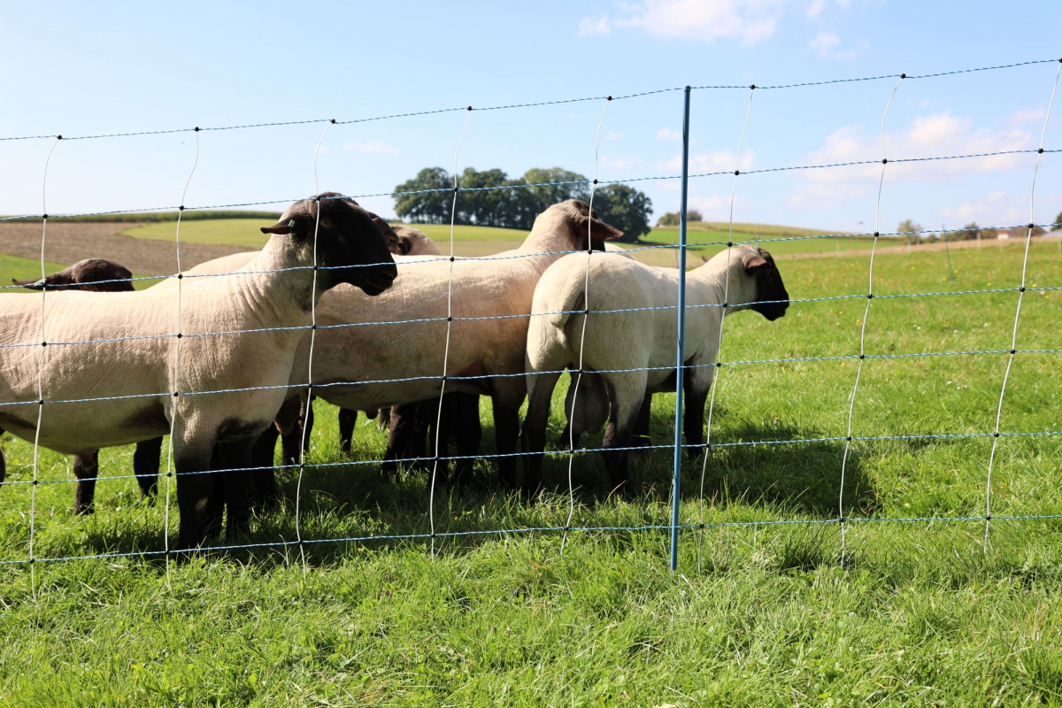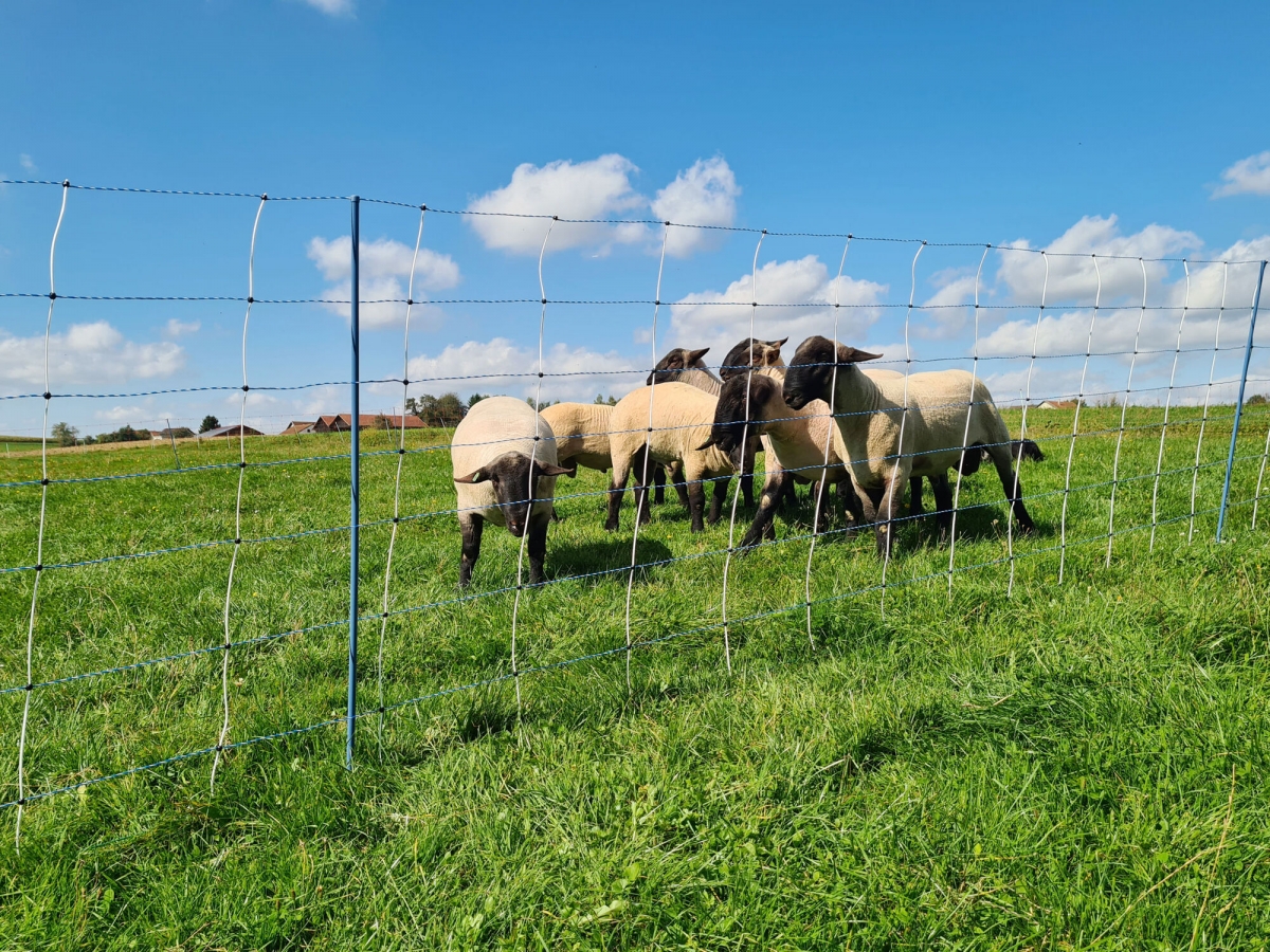 TitanNet Prem. Vario,50 m,+/- blanc/bleu, 108 cm, simple pte - hauteur de 108 cm (8 fils horizontaux) ou 122 cm (9 fils horizontaux), disponible avec simple ou double pointe|14 piquets PREMIUM extrêmement robustes et stables avec pointe de piquet galvanisée|nœuds renforcés extrêmement résistants|en option, fil inférieur raccordable et renforcé pour la mise à la terre sur toute la longueur du filet dans des conditions de sol difficiles (p. ex. pour des sols très sablonneux ou secs)|adaptation optimale au profil du terrain avec supports verticaux stables tous les 30 cm|nos fils en plastique disposent d’une garantie de stabilité aux UV de 3 ans Nous avons complètement retravaillé notre filet de protection contre les loups en collaboration avec des experts en la matière, afin de trouver le compromis idéal entre facilité d'utilisation et protection efficace des animaux.|Les nouveaux piquets PREMIUM, innovants et très robustes, confèrent une stabilité et une solidité maximales au filet.|Hormis la fourniture de la plus grande protection possible, une attention particulière a été accordée à la défense contre l’intrusion d’animaux sauvages venant de l’extérieur.|Grâce au principe +/- spécial, le TitanNet PREMIUM Vario est un filet extrêmement polyvalent et adaptable à chaque situation individuelle.|Les renforts verticaux éprouvés depuis de nombreuses années garantissent une stabilité optimale, même sur des terrains irréguliers.