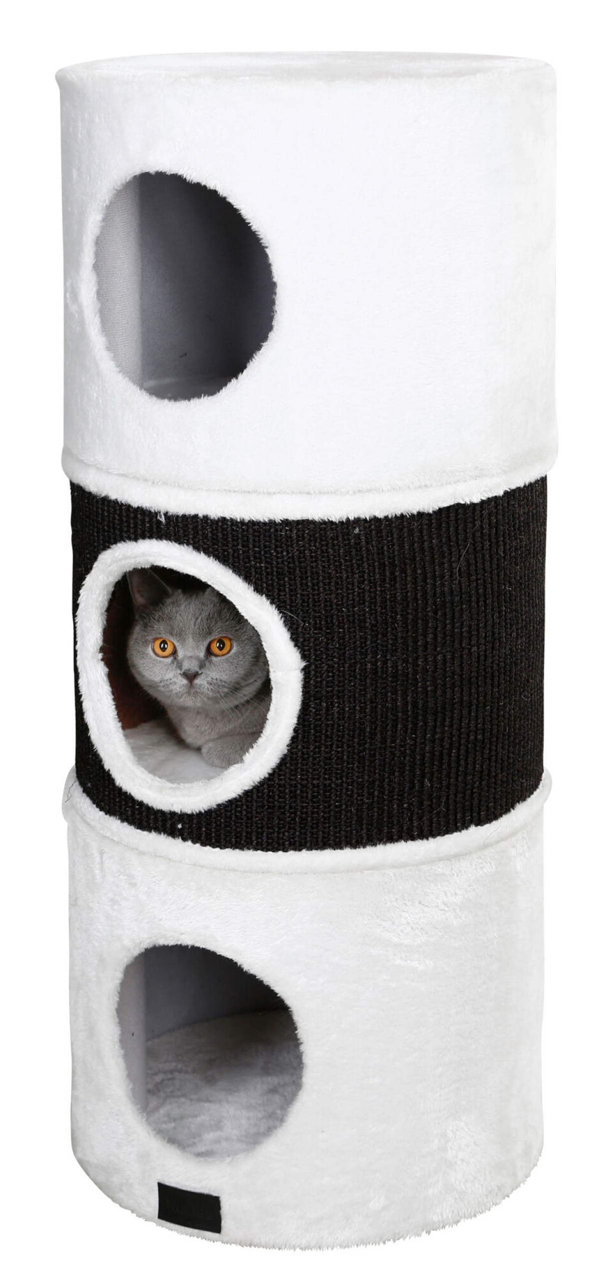 Tunnel griffoir Niki blanc/anthracite, 90cm - griffoir en sisal|trois alcôves séparées : ø 37,5 cm|démontable