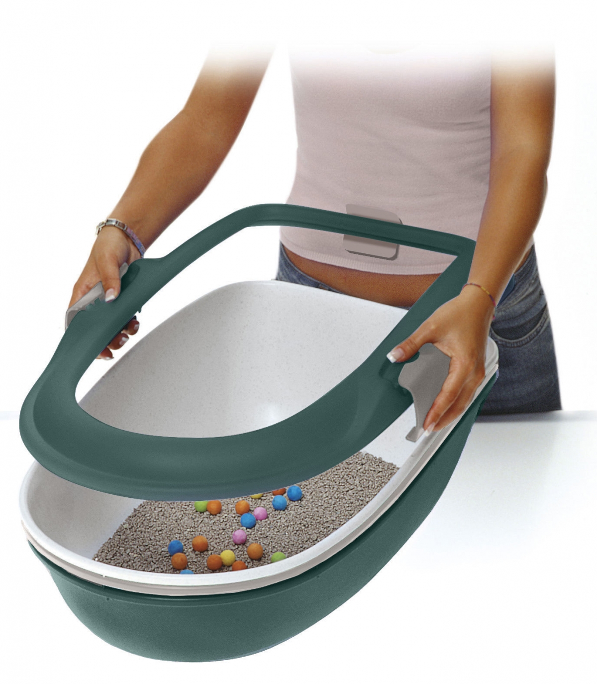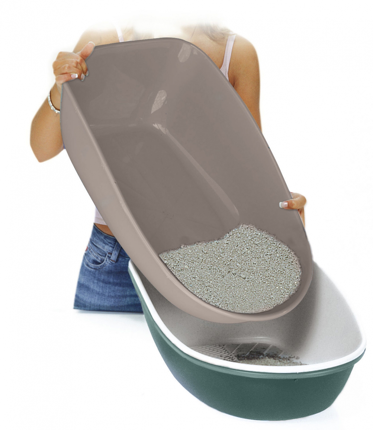 Bac à litière Furba avec tamis, 59X39X22cm - se compose de 2 éléments (interieur et exterieur), d'un tamis et d'un cadre clipsé|pour un nettoyage rapide, simple et hygiénique de la litière