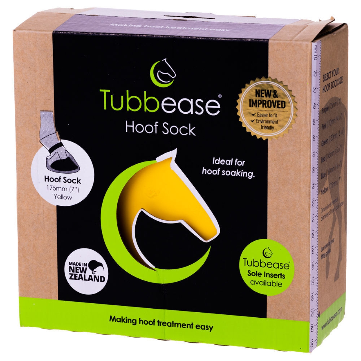 Tubbease 175 mm, jaune, Chausson trait. sabots chevaux - l'intérieur de la chaussure n’est ni chaud ni étouffant, car l'air peut s’échapper par le dessus|la partie inférieure couverte d'un revêtement caoutchouté empêche efficacement la pénétration d'humidité et permet en même temps de faire en sorte que le liquide de traitement reste appliqué au sabot|grâce au climat optimal à l'intérieur de la chaussure, le sabot conserve sa solidité|une semelle intérieure en EVA épaisse réduit la douleur à la pression ressentie par le cheval (p. ex. en cas d'ulcère de la sole) et prolonge la durée de vie de Tubbease™|différents remèdes peuvent être utilisés pour traiter les abcès, le pourrissement, les blessures aux sabots, les éclatements de sabot ou autres avec Tubbease™|Le design Tubbease™ est protégé (NZ 417646)|Fond EVA non fourni ! Tubbease™ a été développé en Nouvelle-Zélande dans l’idée de créer pour les chevaux un chausson de traitement respirant pour les sabots à problèmes (p. ex. en cas d'ulcère de la sole ). Grâce aux bandes en scratch livrées avec les chaussures, Tubbease™ peut être fixée de manière idéale à la jambe du cheval.