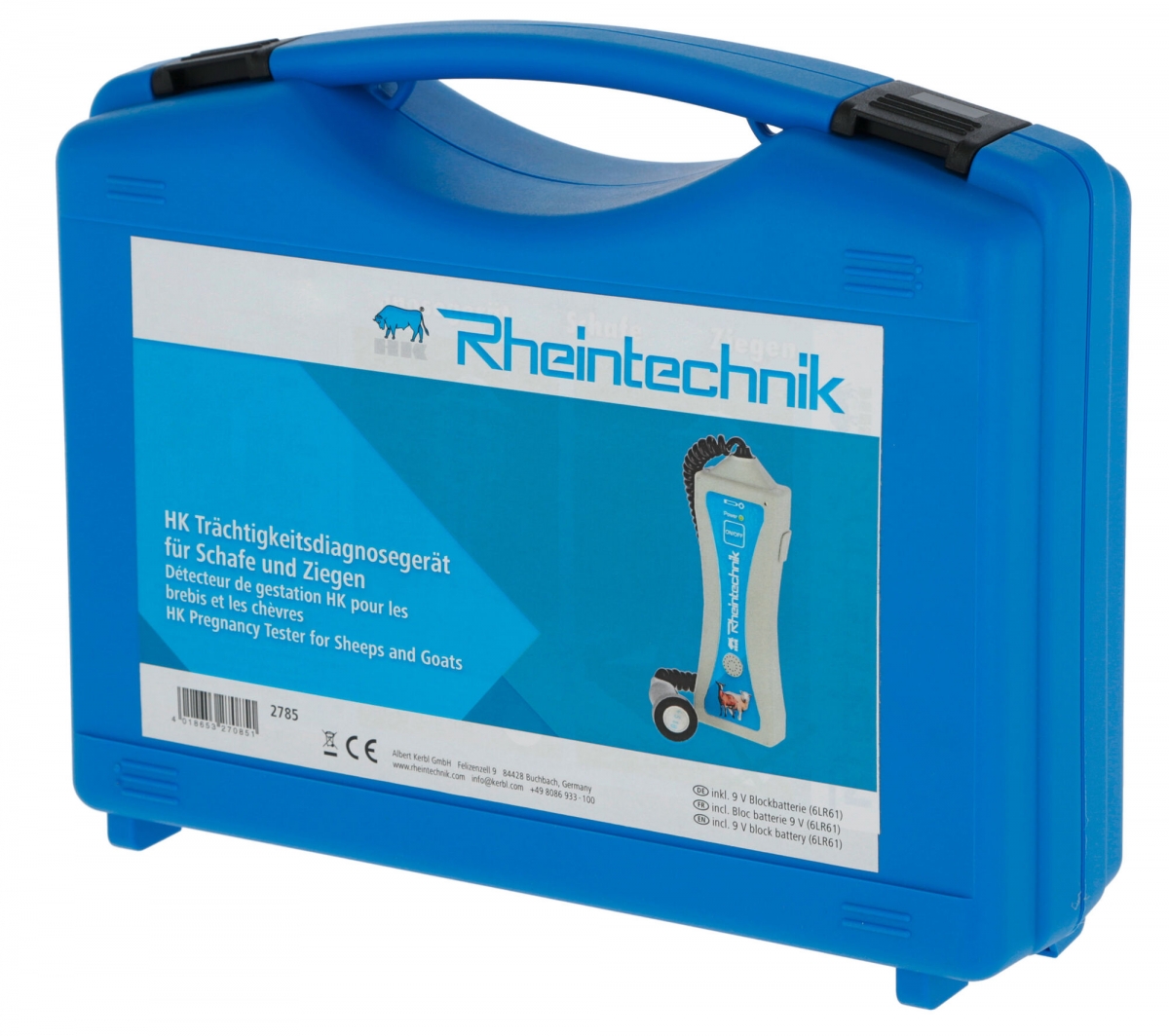 Détecteur de gestation ovins avec sonde externe - fonctionnement sur pile ou sur batterie rechargeable|Mise en marche et à l’arrêt par simple pression d'un bouton|avec coupure automatique|boîtier protégé contre la pénétration d’humidité|indication acoustique et optique de la gestation|Livraison sans chargeur|Livraison dans une malette en plastique robuste Si vous souhaitez éviter les problèmes et les mauvaises surprises dans le déroulement de votre élevage (pseudo-gestation, troubles de la fécondité, etc.), afin de parer aux pertes de rentabilité en résultant, l’utilisation du détecteur de gestation HK vous apporte la sécurité dont vous avez besoin.|Le détecteur de gestation HK est l’appareil qu’il vous faut pour détecter les brebis et chèvres en gestation 60 jours après la dernière insémination avec un taux de fiabilité nettement supérieur à 90 %.
