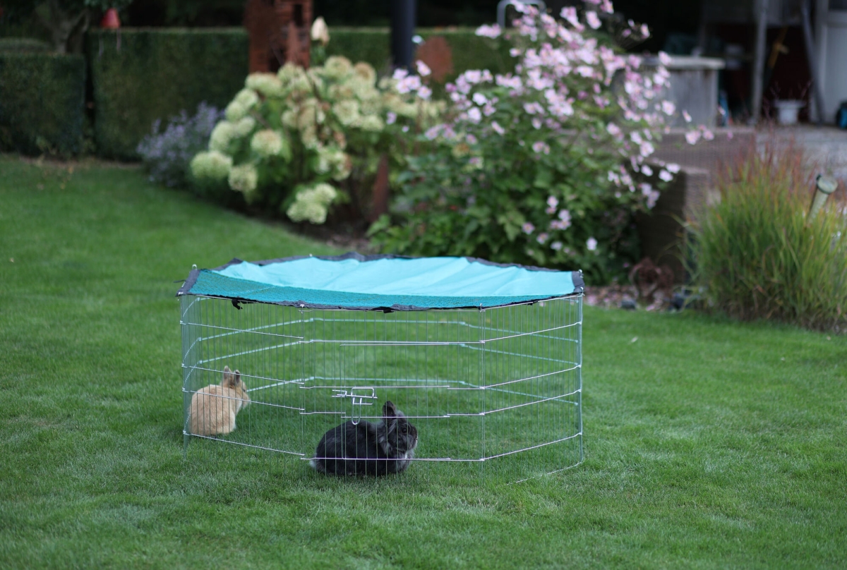 Enclos extérieur octogonal Ø143cm, 57x56cm/pcs x8 - 8 éléments de clôture de 57 x 56 cm chacun|avec porte|montage facile avec sardines|extensible à l'aide un enclos supplémentaire|avec filet à protection solaire