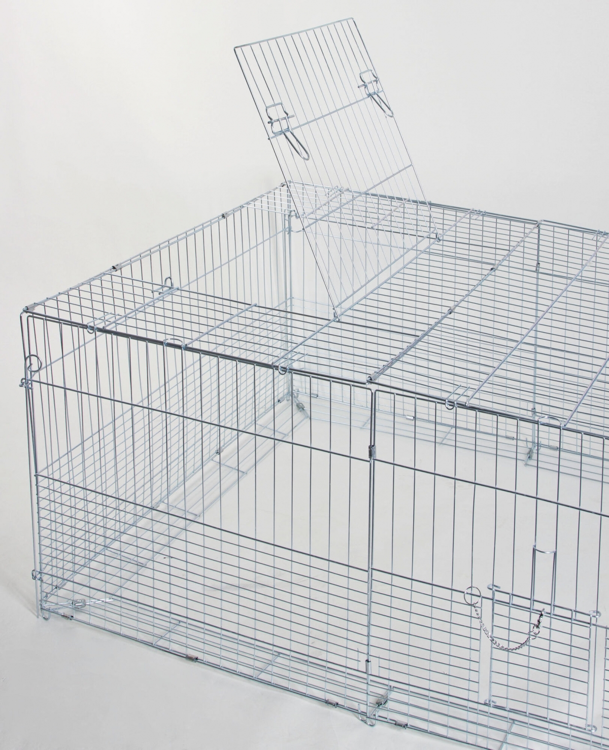 Enclos extérieur pour rongeur jeunes animaux, 144X112X60cm - pour petits et grands animaux|maillage très étroit dans le bas (35 x 18 mm)|Grille de protection évitant les fugues et offrant une protection optimale contre les prédateurs et autres intrus, p. ex. les rapaces, chats ou martes|porte latérale et petite ouverture supplémentaire|ouverture par le haut|montage facile avec sardines