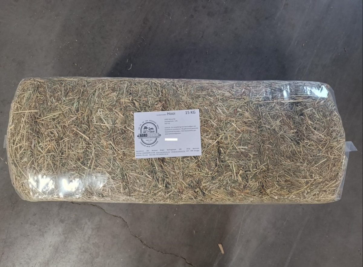 Foin sec en plastique 15 kg - (35 pc/palette) - idéalement adapté aux chevaux, moutons, chèvres, lapins, ... HOOI-DROOG-15KG-35