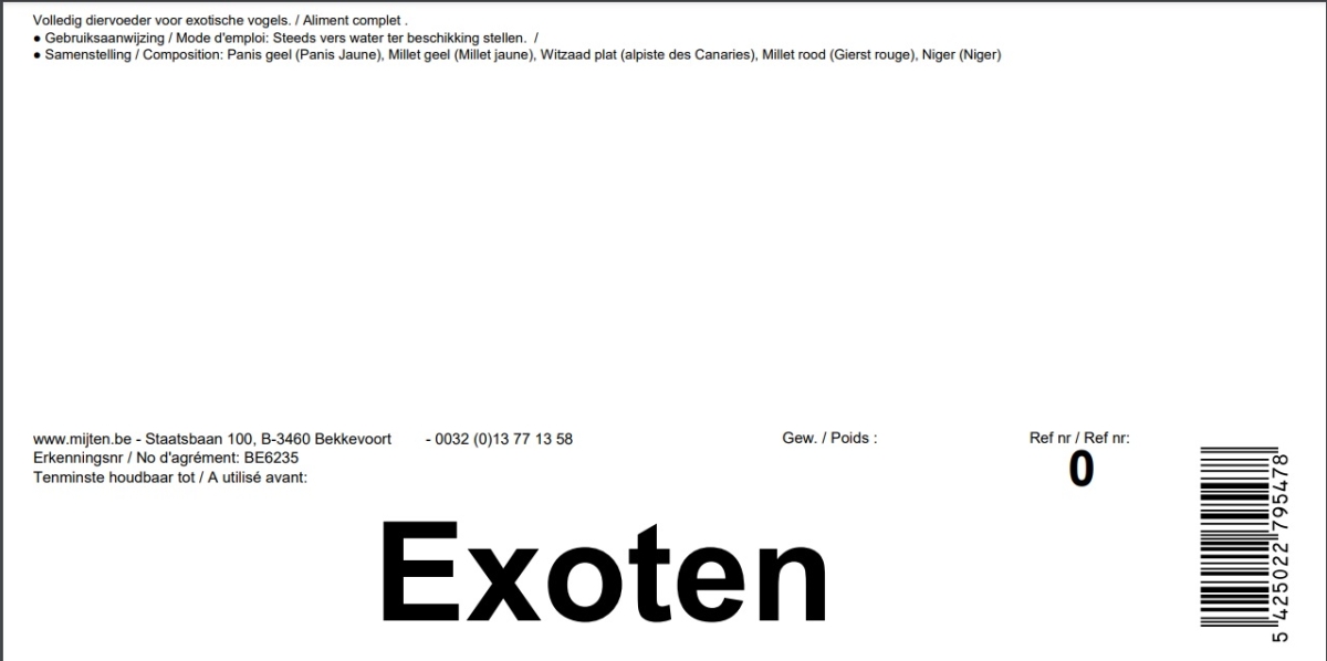 Exoten est un mélange de graines équilibré et harmonieux destiné à tous les oiseaux tropicaux.