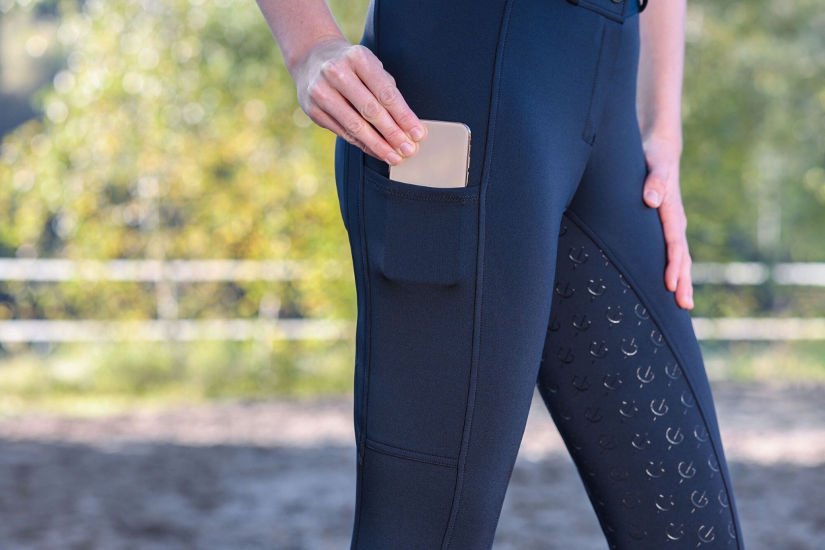 - klassische Ganzjahresreithose aus ultraelastischer Microfaser praktische Handytasche normale Bundhöhe (normale Leibhöhe) für besten Tragekomfort