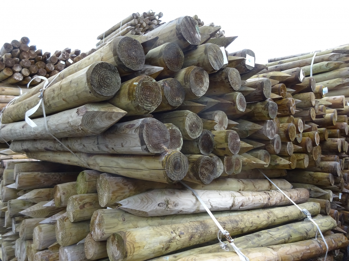 Piquet de prairie en bois pointé ecorcé, hauteur 250 cm diamètre 9 cm - pin imprégné - pour le jardin et la prairie ( pour l'entrepreneur de jardinage c'est un prix spécial sur demande )