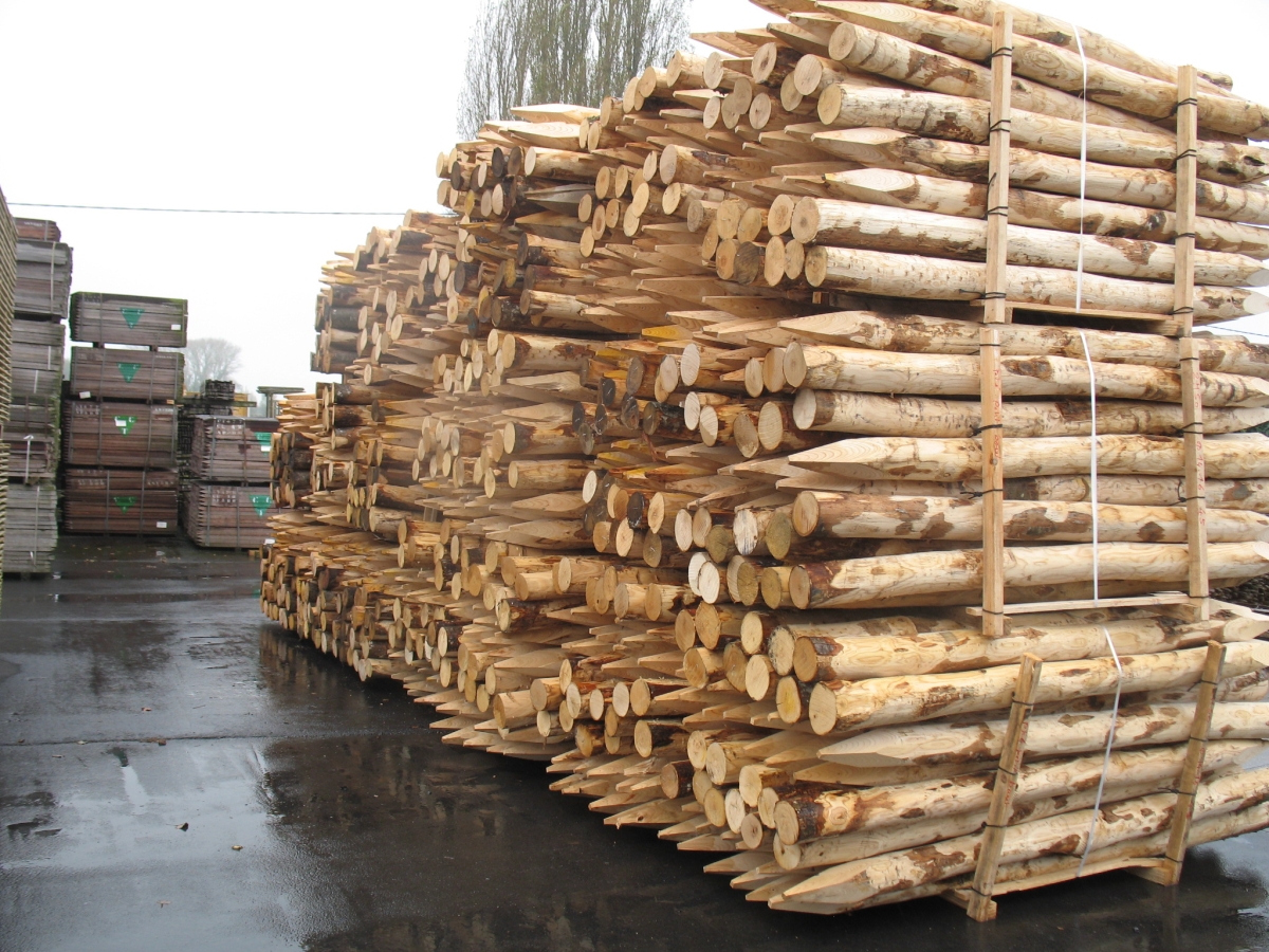 Piquet en châtaignier à pointes pour jardin et animal - hauteur 2m - diamètre 8-10cm (mesuré à l'extrémité fine) - piquets pelés joliment triés ( info: 100 pieces/ pal )