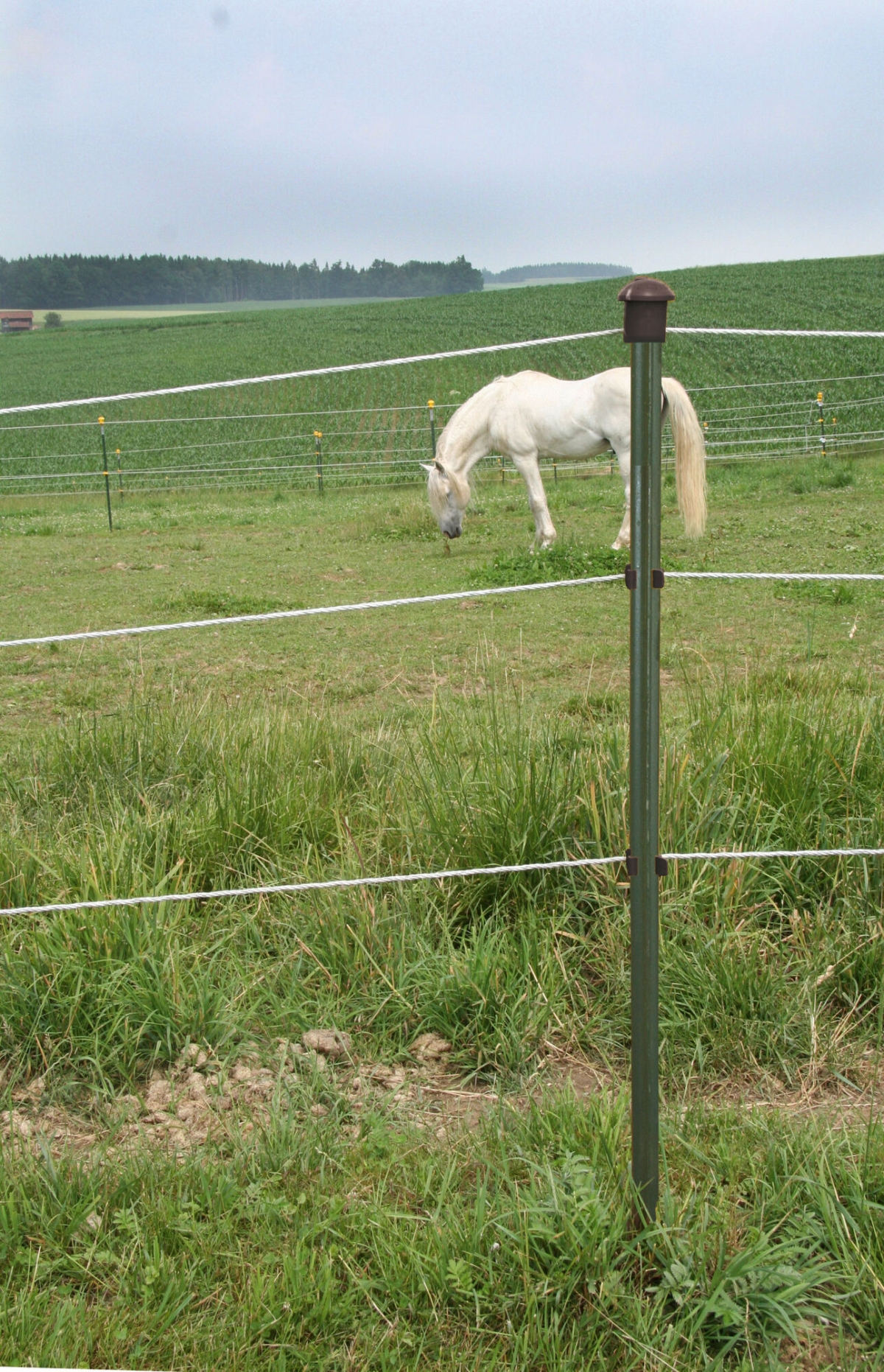 Piquet métallique T-Post vert/blanc, 167cm - avec plaque de pied robuste|peut être enfoncé d'env. 40 cm|idéal pour les clôtures à chevaux, bovins et gibier