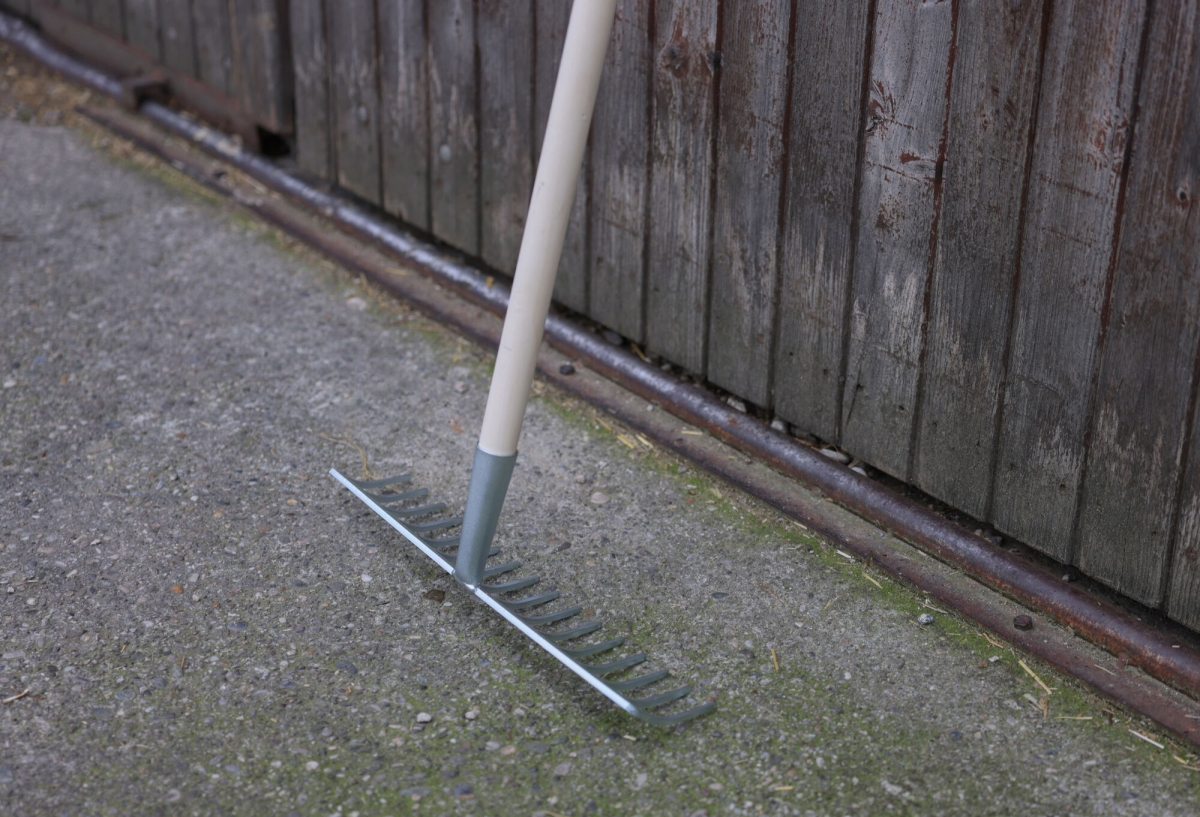 Rateau 16 dents - en acier sablé et galvanisé|matériau très durable, robuste et résistant à la corrosion|convient à tous les travaux liés à la maison et à la cour, p. ex. l’entretien du gazon, l’ameublissement du sol, le ratissage des feuilles mortes