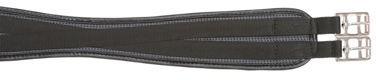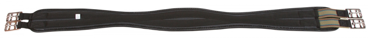 Sangle élastique arquée noire, 110 cm - polyuréthane doux, résistant à l'abrasion et d'entretien facile|la sangle est renforcée sur toute sa longueur pour une robustesse et une résistance à la déchirure extrêmes|avec boucles à rouleau pour un ressanglage facile|élastique sur une extrémité