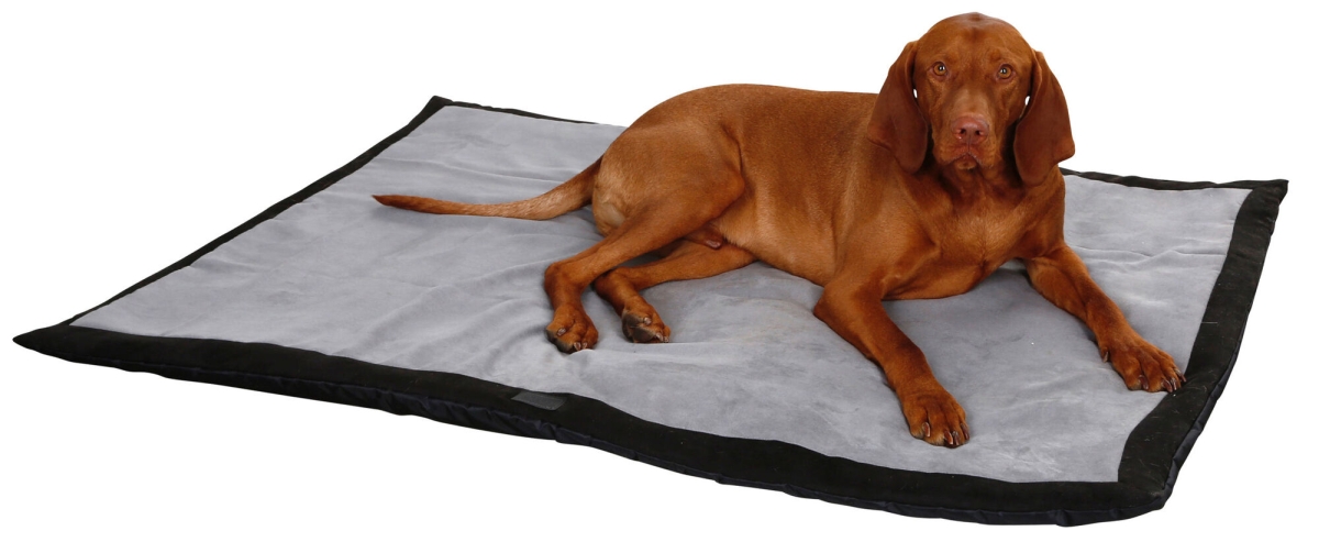 Couverture pour chien Trip gris/noir, 140X100X4cm - idéale pour la voiture, les voyages, les pique-niques, au bureau, etc.|facile d'entretien, robuste et compacte|facilement enroulable, fixation à scratch|avec anse|dessous en tissu Oxford robuste et imperméable|100 % polyester pour protéger de l'humidité|dessus en velours agréable et doux|rembourrage en polypropylène