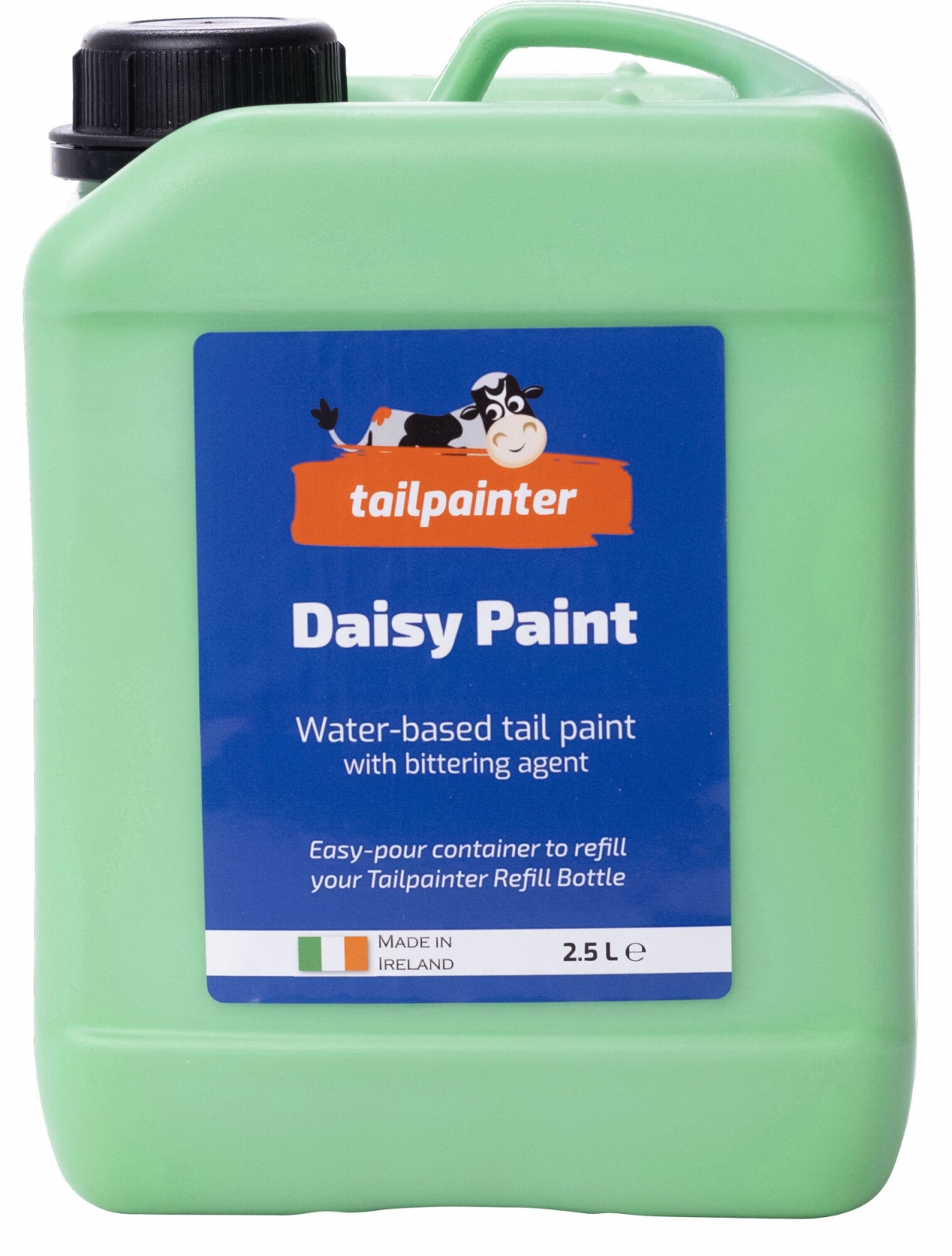 Daisy Paint, groen 2,5 liter - markeerverf op waterbasis voor efficiënte en voordelige bronstherkenning van koeien|verhoogt het succes van inseminatie, reduceert de afstoting bij niet-drachtige dieren en verlaagt de reproductiekosten|de bij de staartaanzet aangebrachte verf wordt door bespringen weggesleten, waardoor bronstige dieren gemakkelijk te herkennen zijn|met behulp van een kleurenschema kunt u de dieren op basis van de cyclus verschillende markeren|voorzien van bittere stof|duidelijke betere zichtbaarheid dan bij gebruikelijke markeerstiften en -sprays|verkrijgbaar in vier heldere kleuren: rood, blauw, groen en oranje|eenvoudig aanbrengen van de verf met behulp van de optioneel verkrijgbare tailpainter-applicator