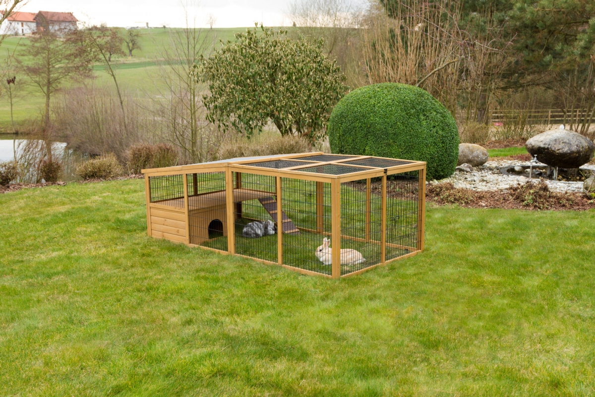 Knaagdierren konijnenren buitenren met plastic dak uitbreekblokk. 220x115x75cm - kerbl 81708