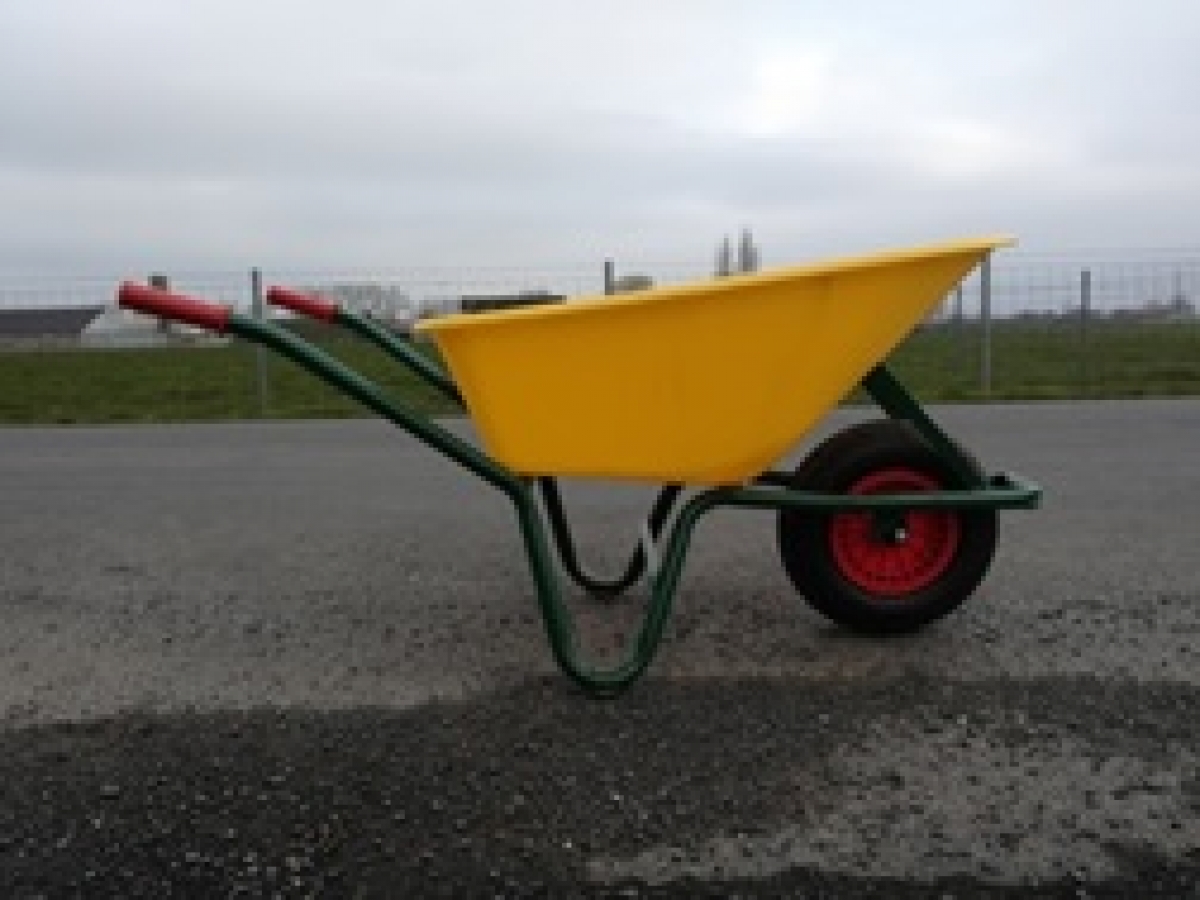 Kruiwagen met kunststoffen bak 100L en gelakt onderstel - stalen velg met luchtbandwiel 2ply