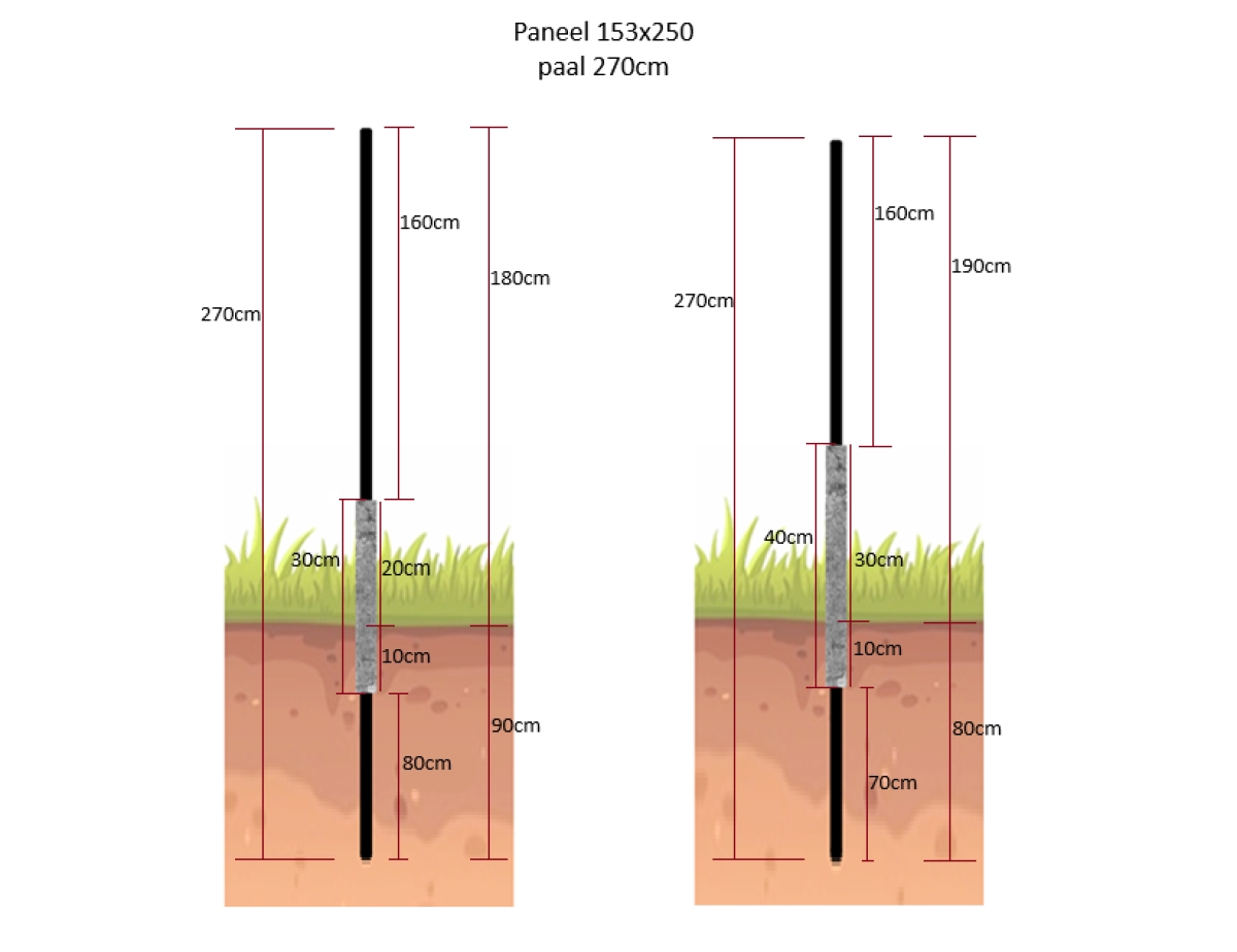 60 cm monteren onder de grondoppervlakte met behulp van stabilisé met betonnen onderplaat