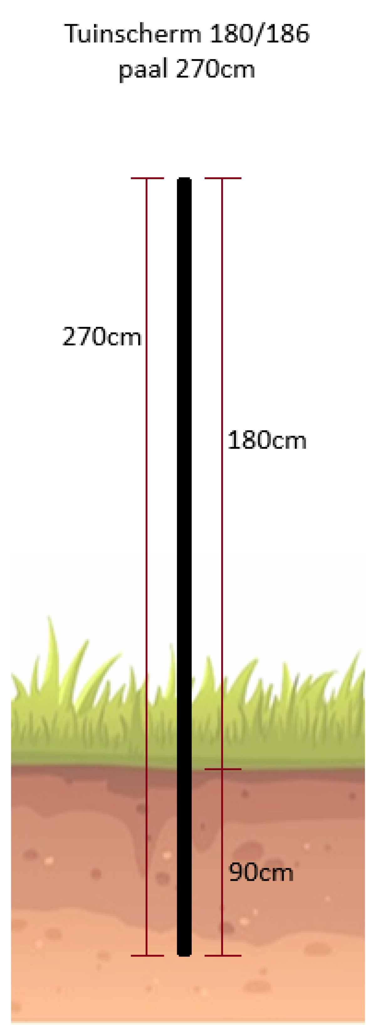 De paal easyclip 270cm kan worden gemonteerd op 3 wijzen: