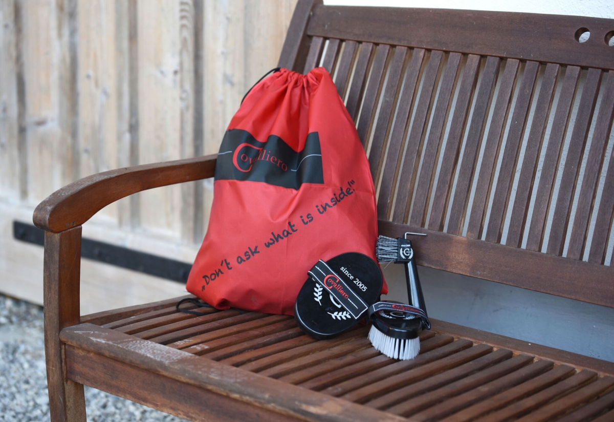 Verz.zak Covalliero, gevuld voor volwassenen - aantrekkelijke sportzak gevuld met vachtverzorgings- en poetsbenodigdheden in trendy look|100 % polyester