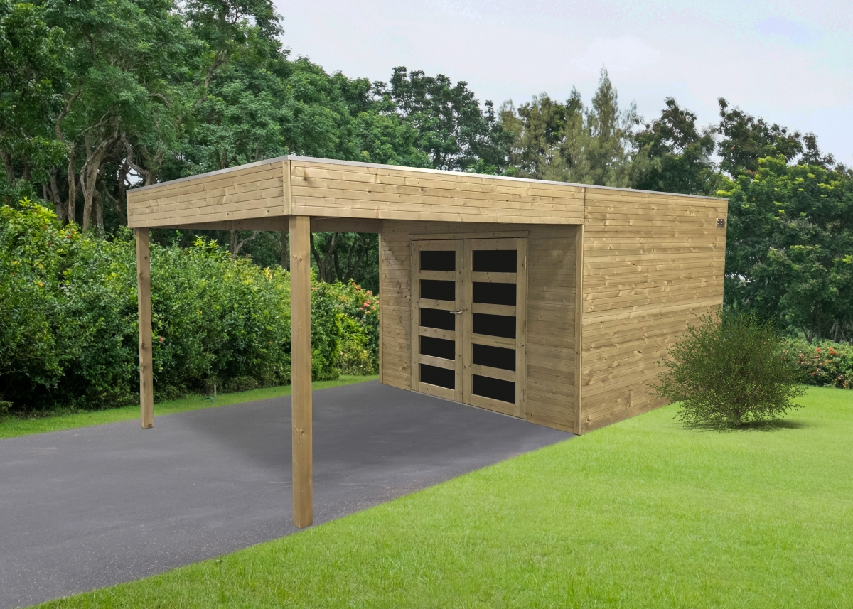 Tuinhuis in hout - cube matera geimpregneerd 2988 x 2908 + 2870 mm 19 mm wanddikte - art s8743-1 - solid
